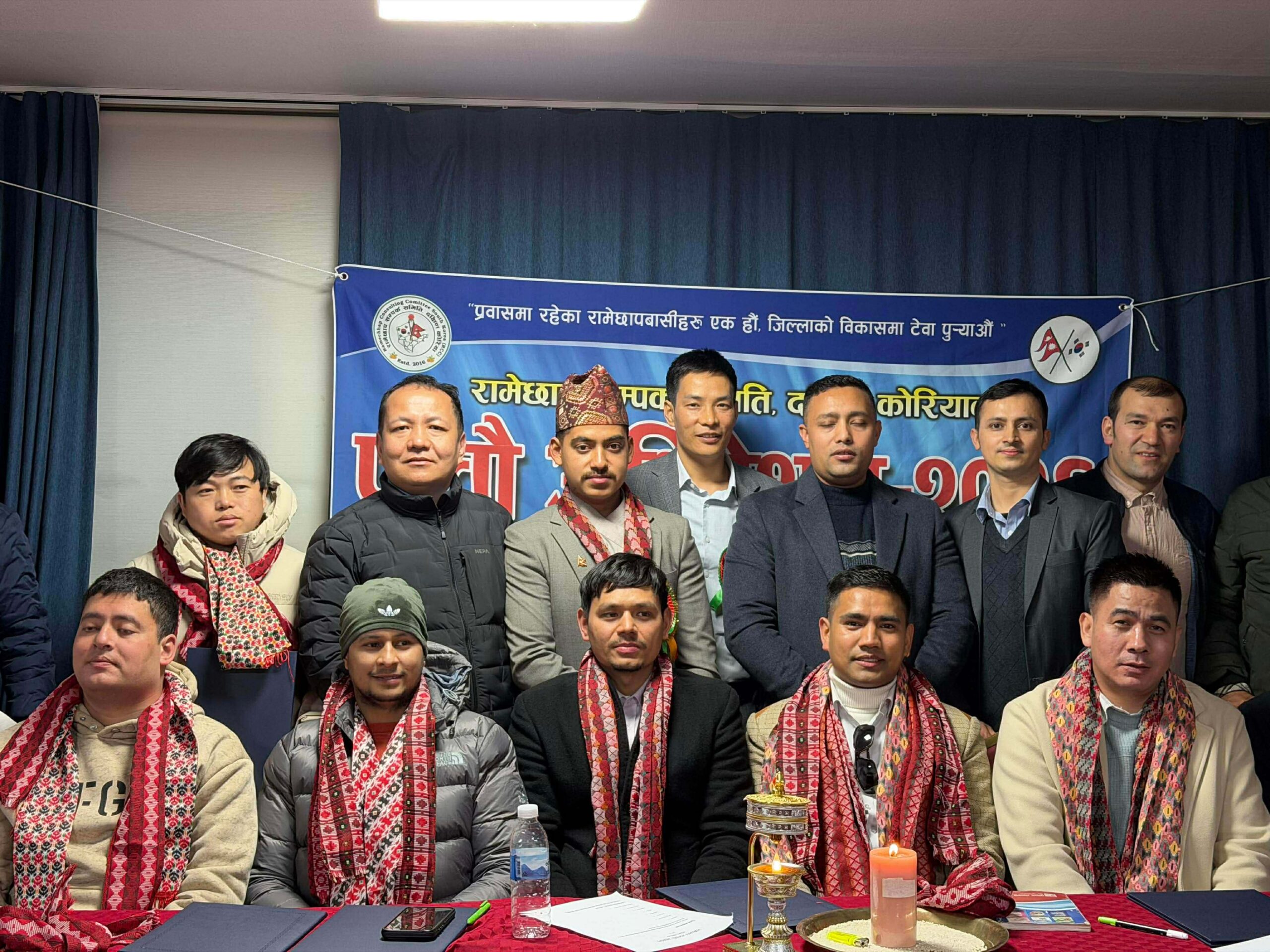 दक्षिण कोरियामा क्रियाशील रामेछापेलीहरूको साझा संस्था ‘रामेछाप सम्पर्क समिति, दक्षिण कोरिया’ को पाँचौं अधिवेशन आज आइतबार २०२६ फेब्रुअरी १५ का दिन भव्य रूपमा सम्पन्न भएको छ। सौलको दर्शन नमस्तेको सभा हलमा आयोजित उक्त अधिवेशनले आगामी कार्यकालका लागि आदेश खड्काको अध्यक्षतामा १३ सदस्यीय नयाँ कार्यसमिति सर्वसम्मत रूपमा चयन गरेको छ।
