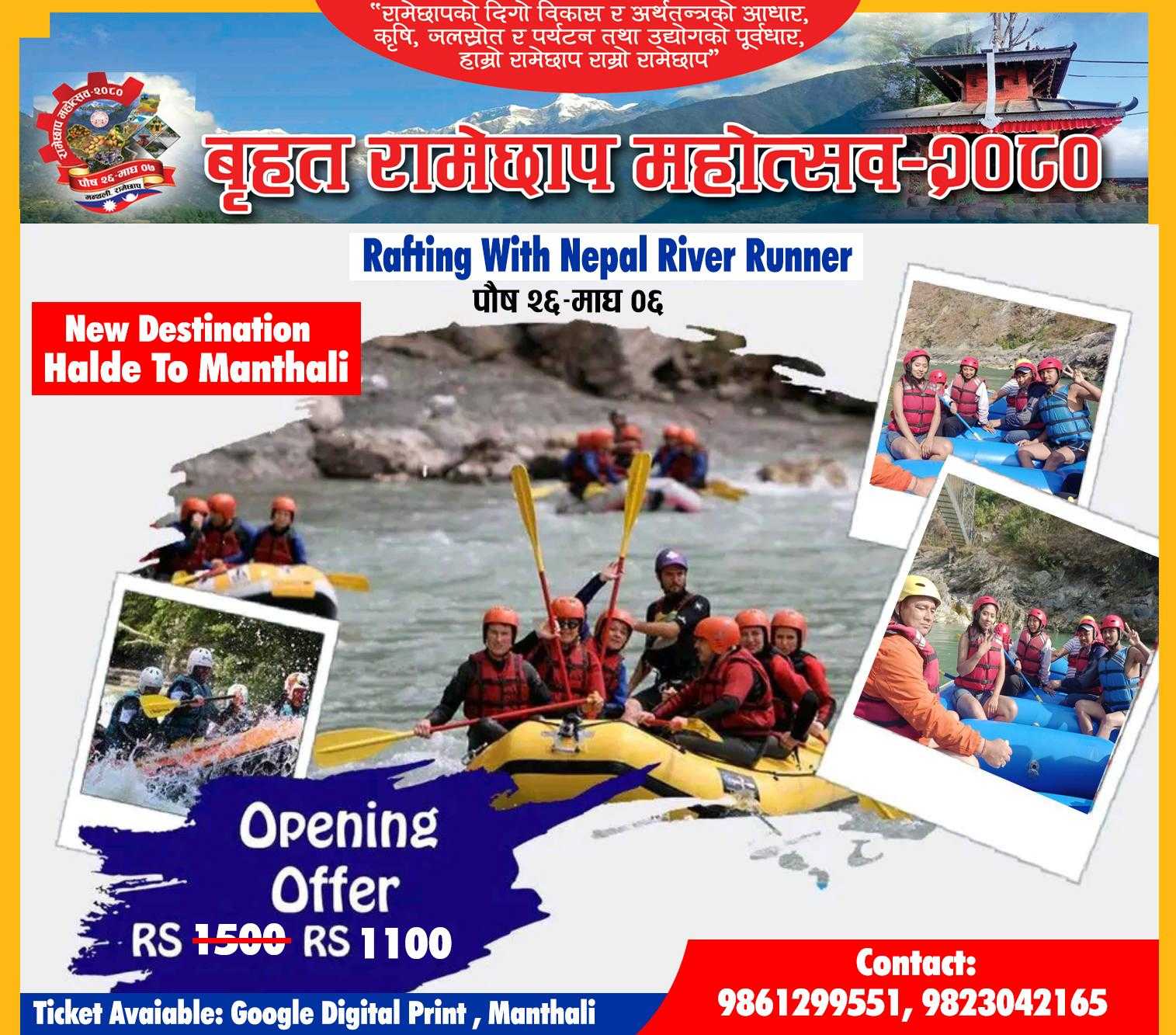 तामाकोशी नदीमा र्याफ्टिङ समेत सञ्चालन गरेर महोत्सवमा थप मनोरञ्जन दिन लागेको सार्वजनिक गर्दै राष्ट्रिय ख्याति प्राप्त कलाकारहरुबाट सांस्कृतिक कार्यक्रम, बाल मनोरञ्जनात्मक (पिङ लगायत) समावेश गरिने प्रस्ट पारे ।