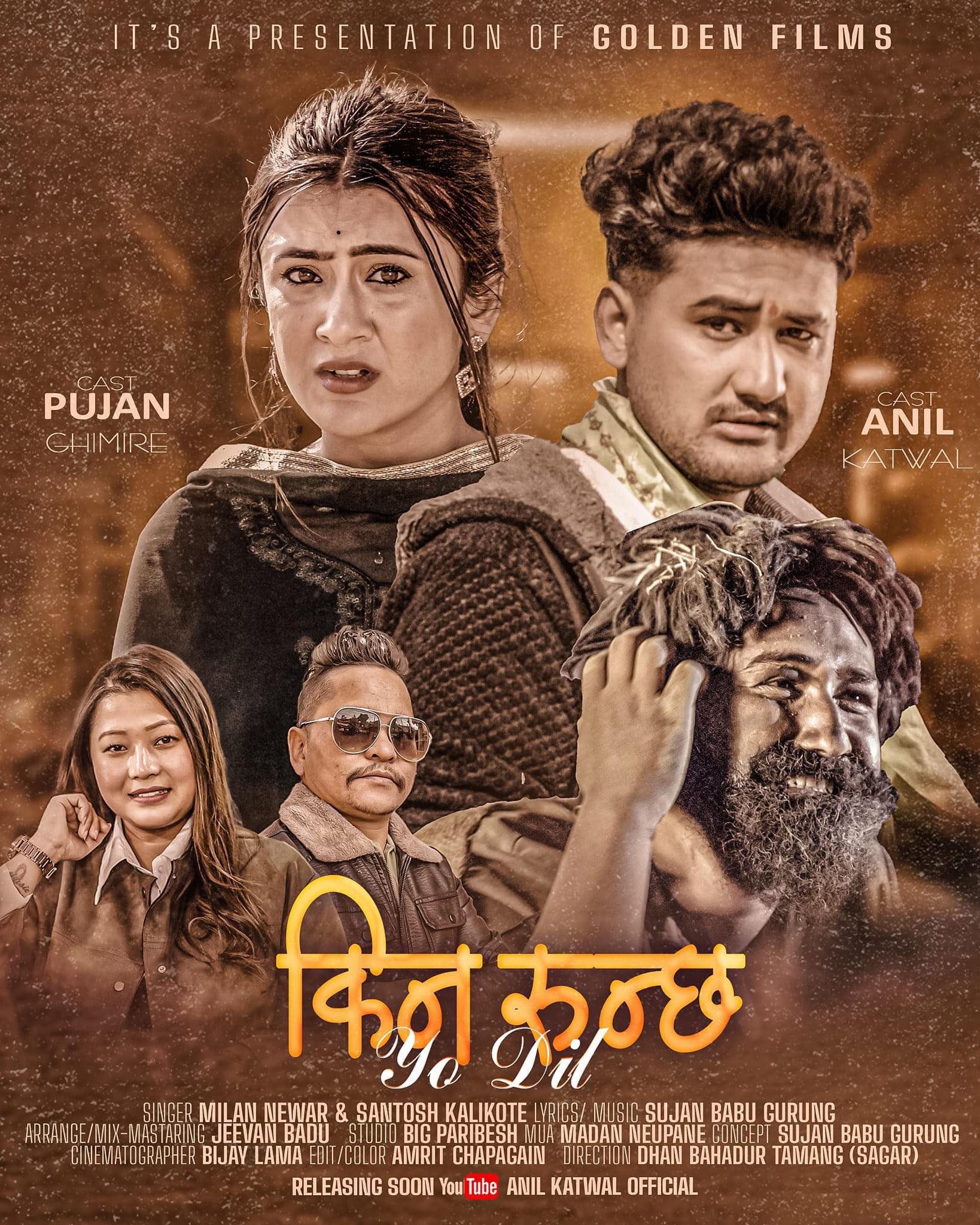 अनिल कटुवाल को किन रुन्छ यो दिल सार्बजानिक। उक्त गित मा स्वर मिलन नेवार र सन्तोश कालिकोटे रहेको छ भने शब्द सङित सुजन बाबू गुरुङ को रहेको छ। म्युजिक एरेन्ज र मिक्सिङ जीवन बडु ले गरेका छन भने बिग परिबेश स्टुडियो मा उक्त गित रेकर्ड गरेयको थियो। भिडियो निर्देशक धन बहादुर तामङ (सागर) ले गरेका छन भने उक्त भिडियो को कन्सेप सुजन बाबू गुरुङ को रहेको छ। उक्त भिडियो मा अनिल कटुवाल,पुजन घिमिरे,बिमला लामा,बलाराम परिवार र सरोज तिमल्सेना को अभिनय रहेको उक्त भिडियो मा सिनेम्यटोग्राफर बिजय लामा को रहेको छ। तेसै गरि इडिट,कलर अ्मृत चापागाइ को रहेको छ भने सृङार मा मदन न्याउपाने ले गरेका छन। उक्त भिडियो कि निर्मान कार्य फर्पिङ मा गरेयको थियो।